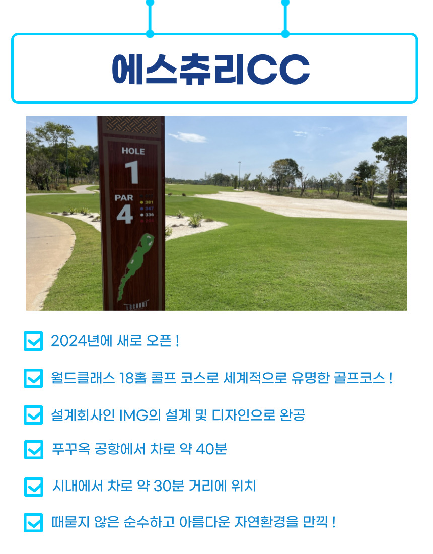 • - 2024년에 개장한 골프장으로 시설관리와 골프장 컨디션이 매우 우수한 ⛳에스츄리CC
